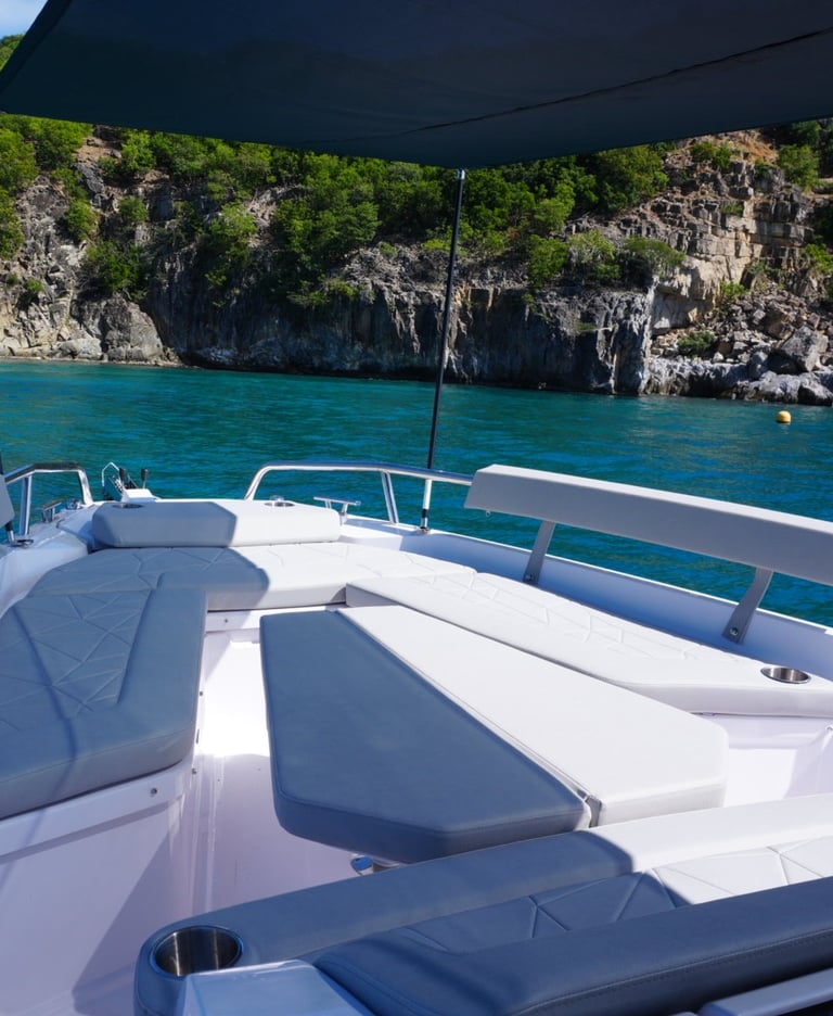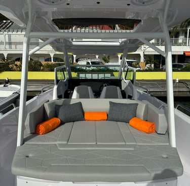 Stylish Comfort: Designed with both performance and comfort in mind, the Axopar 30 features spacious deck areas, comfortable seating, and ample sun protection. Relax and soak up the Caribbean sun while enjoying the gentle sea breeze.