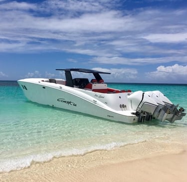 Welcome aboard our sleek CONCEPT 44, a boat with an incredible hull in St Barths.