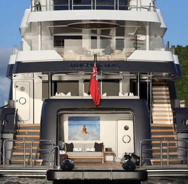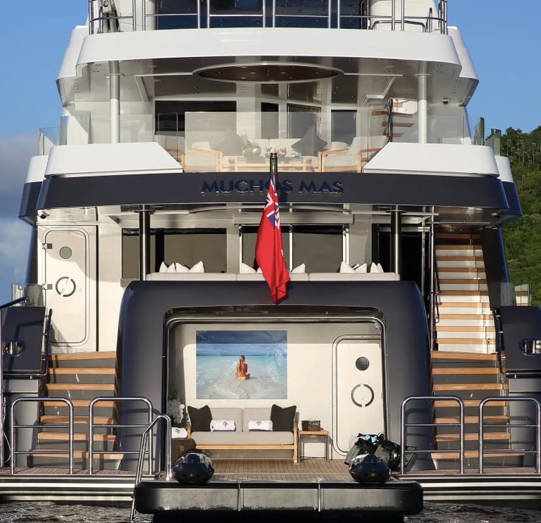 MUCHOS MAS features exceptional outdoor areas for relaxing and entertaining. The seated bar in the main saloon opens up to the aft deck for indoor-outdoor living. As you move from the main deck aft to the bridge deck and the bridge deck forward, you will find an abundance of al fresco dining and relaxation options. Arguably the most standout feature on board MUCHOS MAS is the sensational sun deck, which has a full bar, BBQ, day head, large sunpad forward, two misting systems for hot days, and a unique corner waterfall jacuzzi forward with 54 jets and a swim-up bar.
