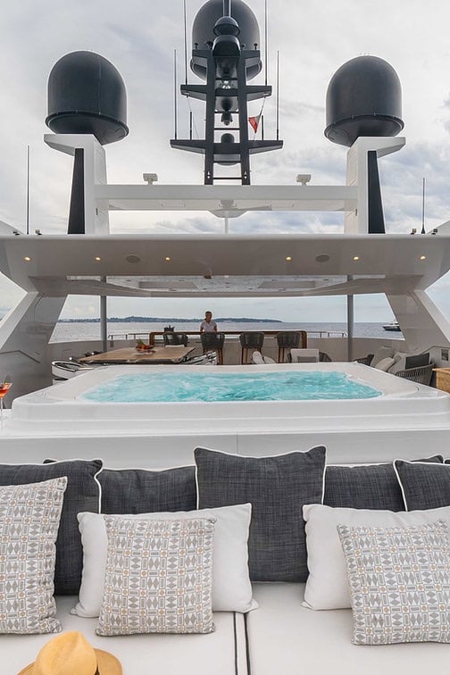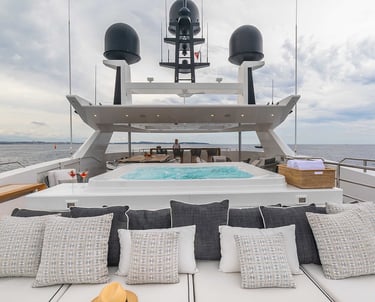 Flybridge spacieux avec jacuzzi, bar, et espace lounge