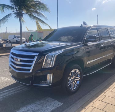 Top-of-the-range vehicles: Cadillac Escalade and Mercedes V-Class, synonymous with luxury and comfort.
